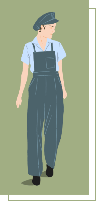 During WW1, women took on a lot of male jobs, working as blacksmiths, welders and electricians. They would often wear men’s overalls and their hair tied up in knots.